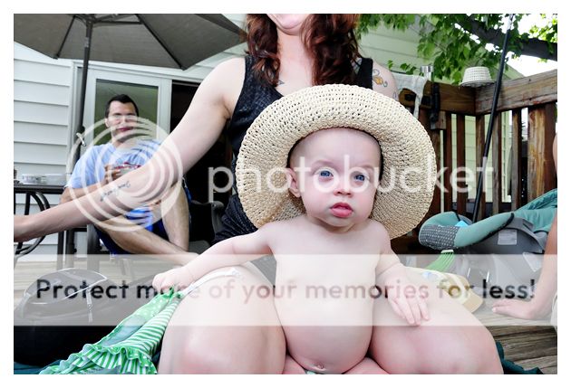 excitedly got her all decked out for a day at my friend’s pool. She got a floppy straw sunhat, a fancy pool
