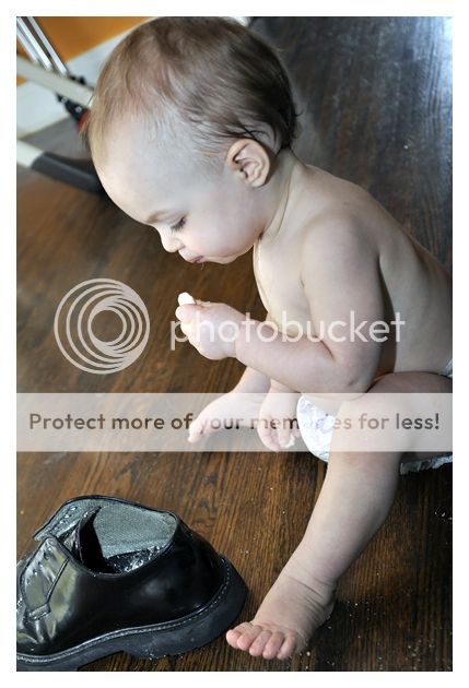 Gloria certainly has her father's obsessive, constantly-in-motion energy. I turn around to edit photos for a minute and when I return, her hand is wrist-deep in a container of petroleum jelly that she dragged out of her diaper bag. I look out the window and glance back to see her pouring and then eating puffs out of her father's shoe. Two seconds go by when I'm not right with her and she has somehow slapped my phone browser to a Russian porn site.